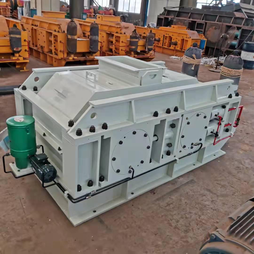 該機(jī)工作原理與輥壓機(jī)相近,采用了料層擠壓破碎的理念,其主體是由一對(duì)相互平行、水平安裝的圓柱形輥?zhàn)咏M成,分別由兩套彼此獨(dú)立的動(dòng)力裝置驅(qū)動(dòng)。當(dāng)這對(duì)輥?zhàn)幼鱿嘞蜻\(yùn)轉(zhuǎn)時(shí),進(jìn)入喂料口的物料受到輥?zhàn)拥臄D壓、沖擊、磨削而細(xì)碎,并隨自身重力被旋轉(zhuǎn)的輥?zhàn)铀Τ觯蛳滦堵洹?/p>